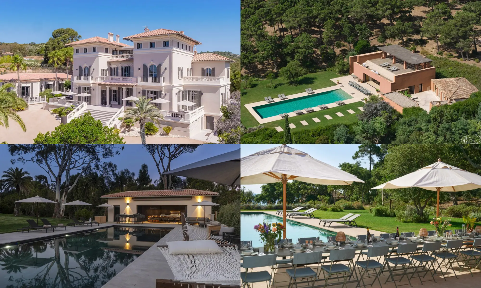 - Villa Beauvallon: a collection of four luxurious houses, creating a magical destination for group getaways. Set on 7 hectares and boasts 25 bedrooms and 24 bathrooms, accommodating up to 46 guests across 4 distinct houses. Daily housekeeping is provided. Surrounded by gardens, each house has its own private pool, sea views, and multiple terraces. Sophisticated furnishings appear in soothing neutrals and tasteful pops of color in shared spaces and private bedrooms.