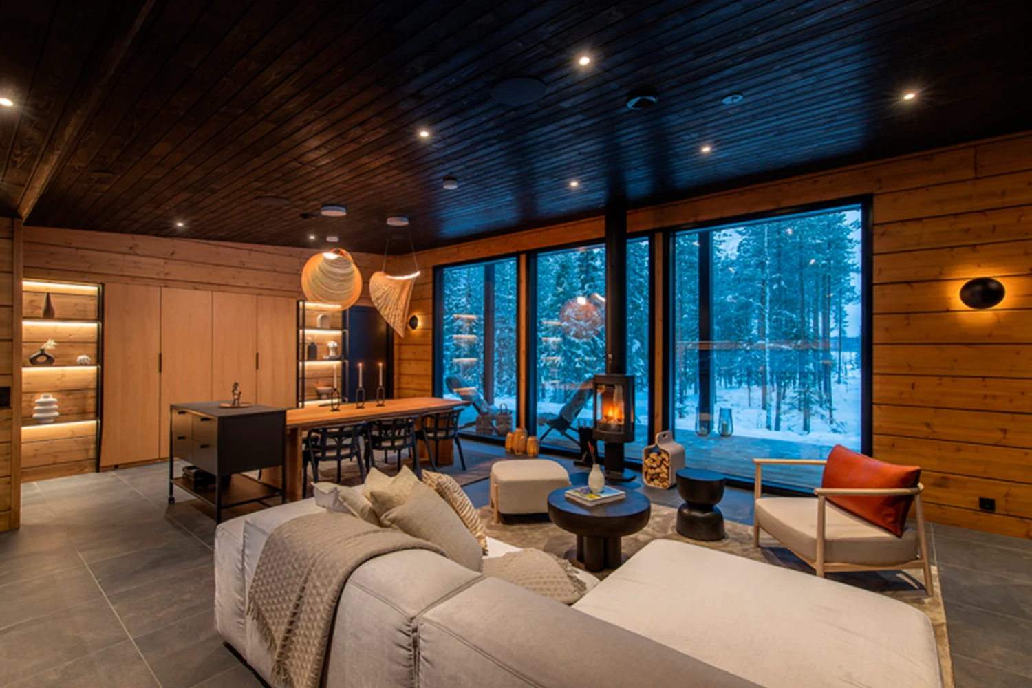 Located in a secluded forest just 20 minutes from Rovaniemi, these brand-new villas blend luxury, comfort, and privacy. With panoramic windows, private saunas, and outdoor jacuzzis, each villa offers the perfect setting to relax and reconnect with nature — all attended by your private chef and host.