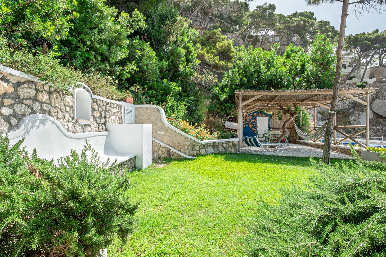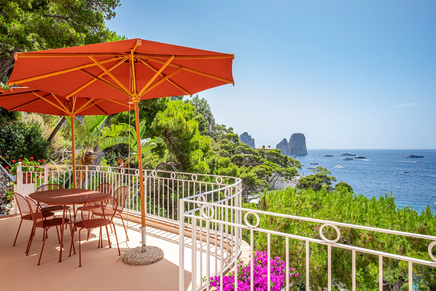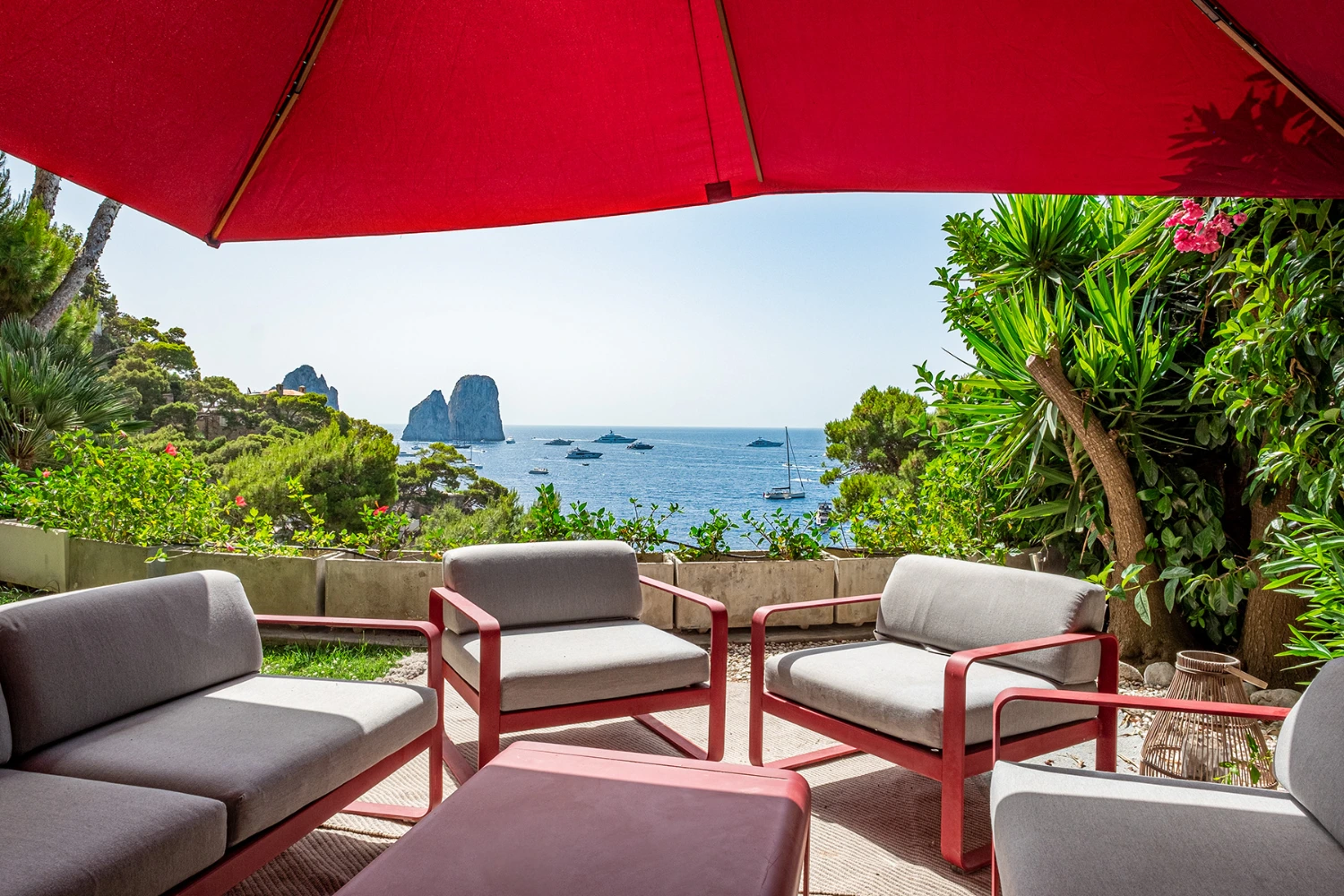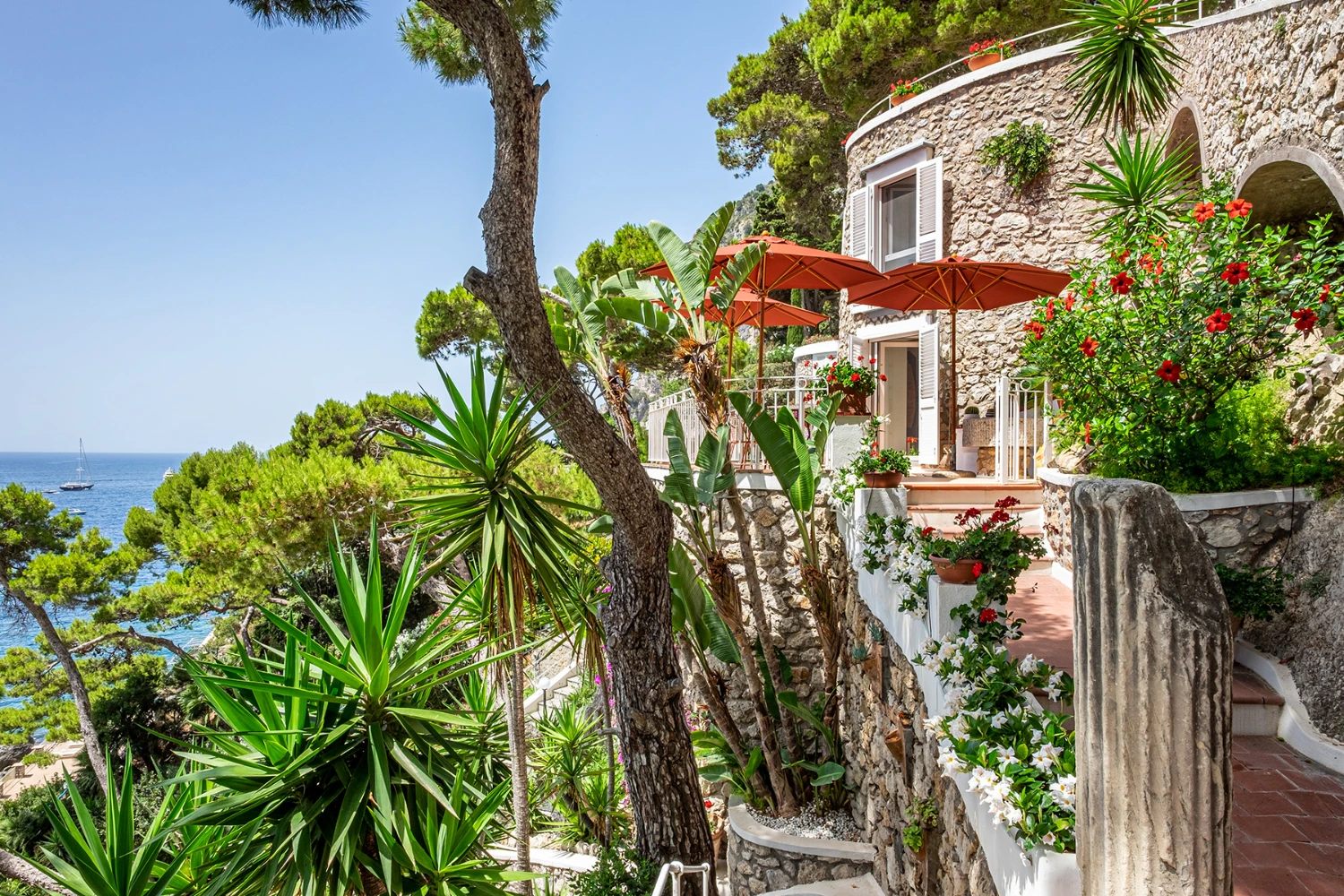 Looking out on the iconic Faraglioni Rocks and surrounded by a tropical and Mediterranean garden, a pine forest, and limestone cliffs, Tenuta Saracena provides the privacy of a clifftop escape. At the same time, guests can take advantage of the villa’s proximity to Marina Piccola, a family-friendly bay and beach cove, and Capri Piazzetta, a lively public square perfect for people watching while sipping an Aperol spritz.