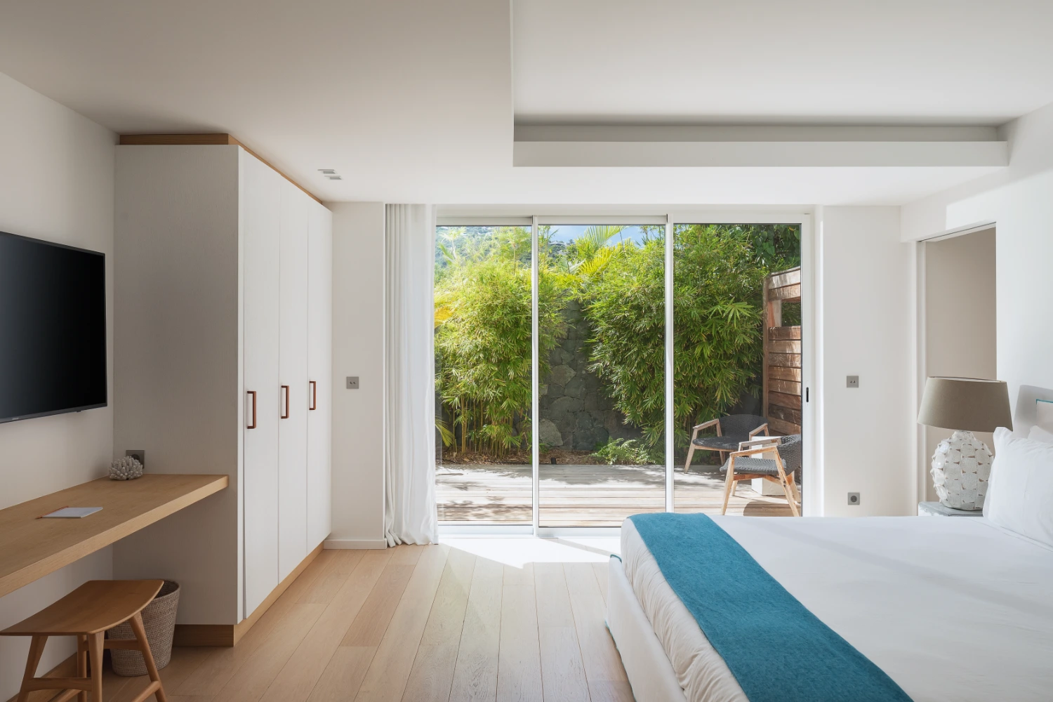 This family-friendly, accessible villa is ideal for guests of all ages, who will have exclusive access to the nearby hotel’s Beach Club, the fitness and yoga room, and the Watersport Center equipped with canoes, paddleboards, and snorkeling equipment. Villas Aqua & Bleu is a serene beachfront escape in St. Barths, combining timeless island decor with modern luxury for an unforgettable stay by the sea.