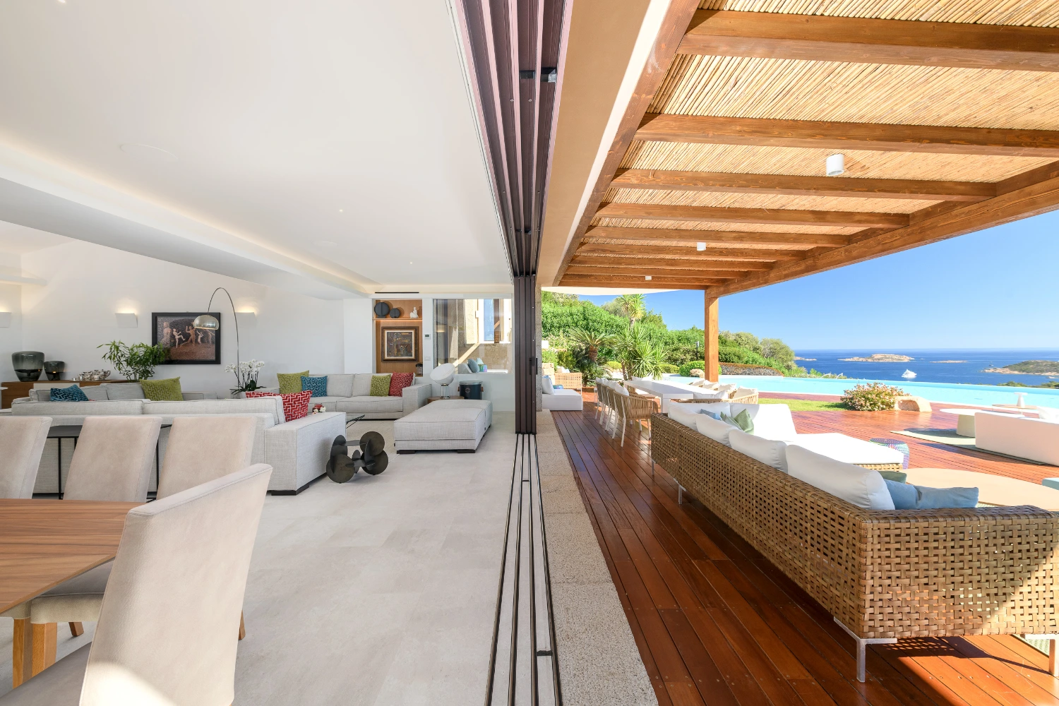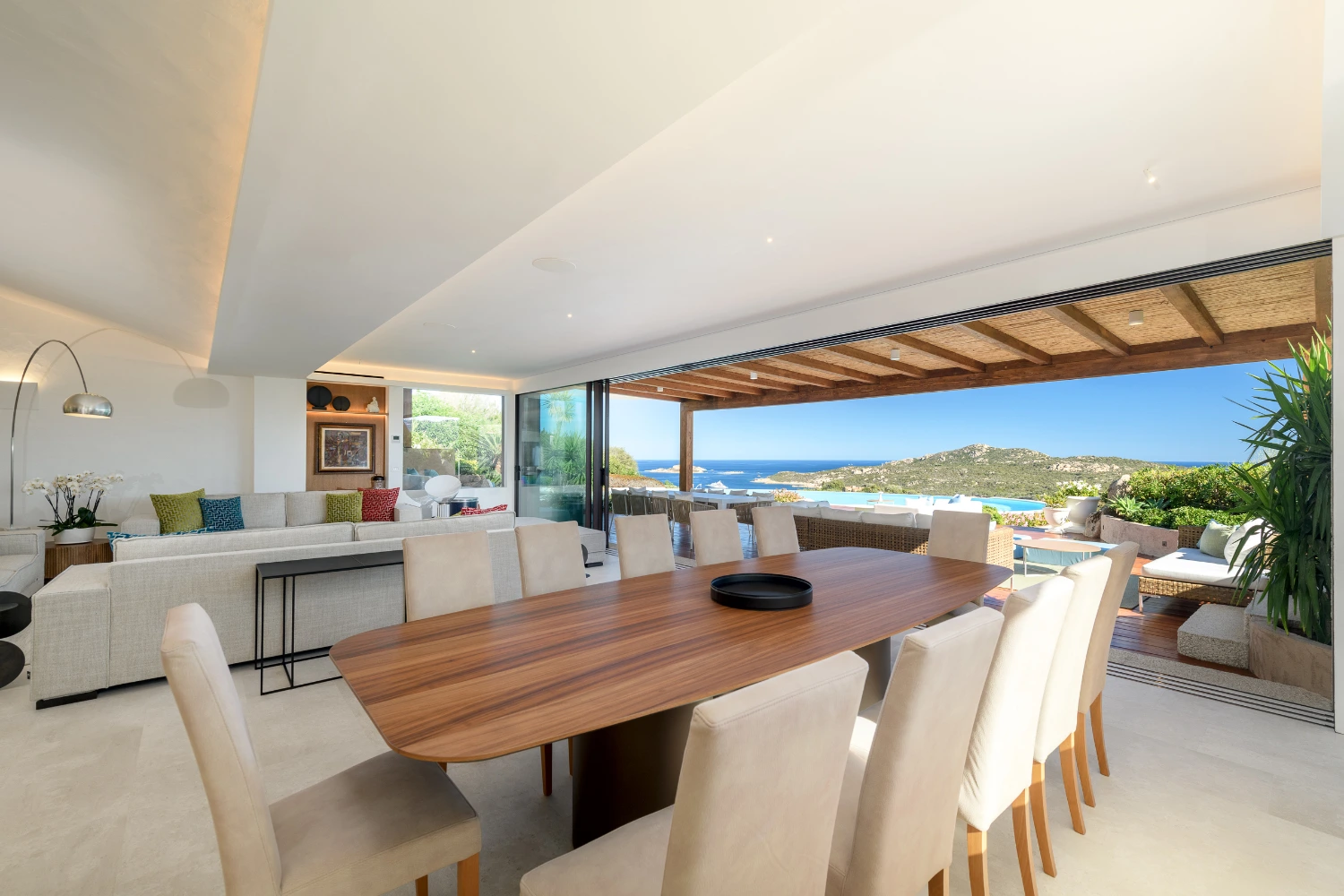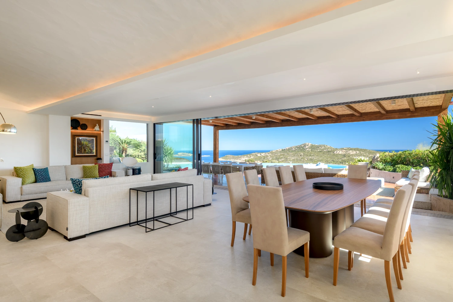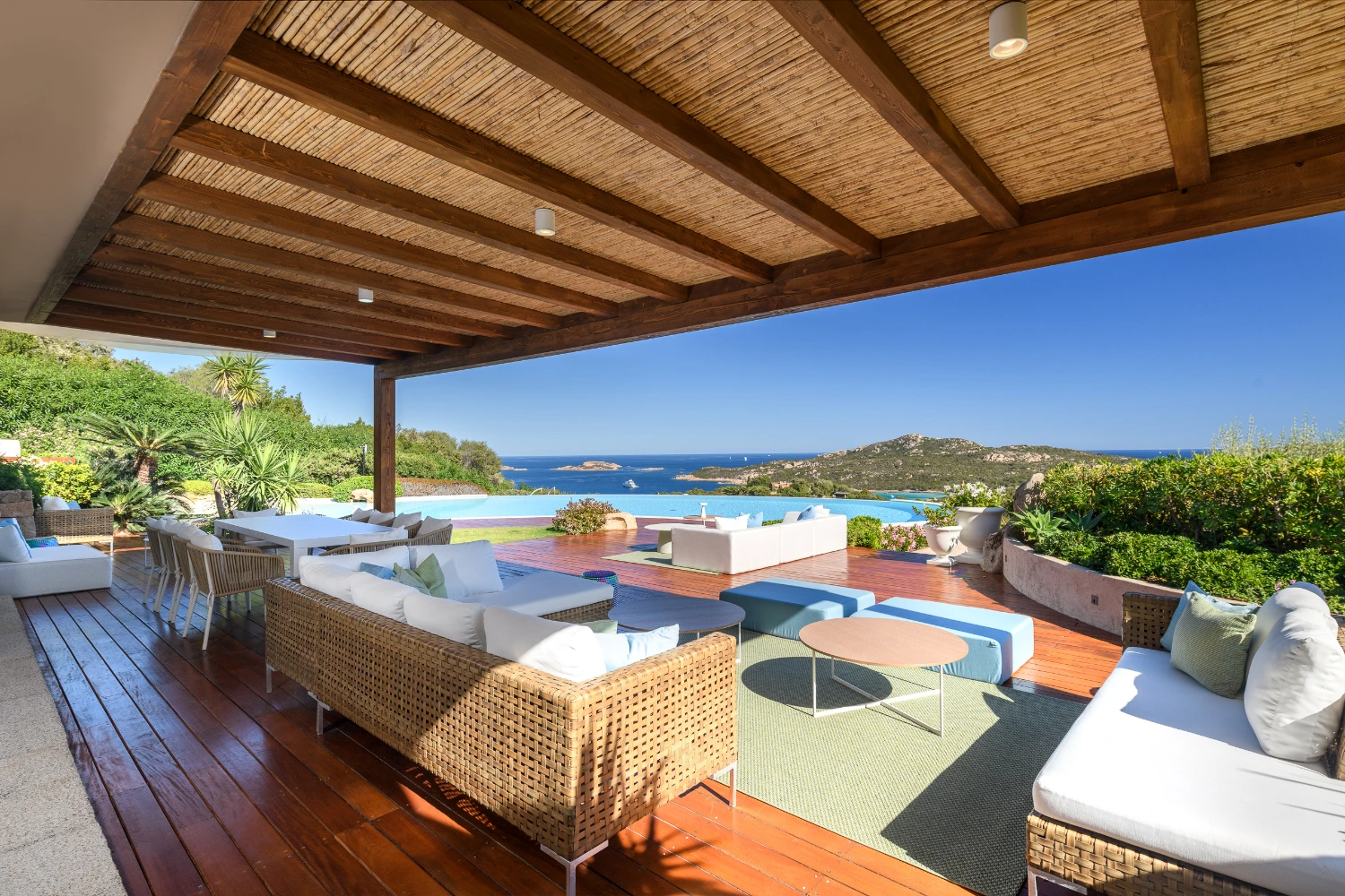 Dine al fresco or gather on the rooftop terrace to take in spectacular views of the Gulf of Pevero. An indoor and outdoor sound system lets you set a festive tone for drinks with the group or an intimate dinner. Gather around the pool to soak up the sun or take a swim in its heated waters.
