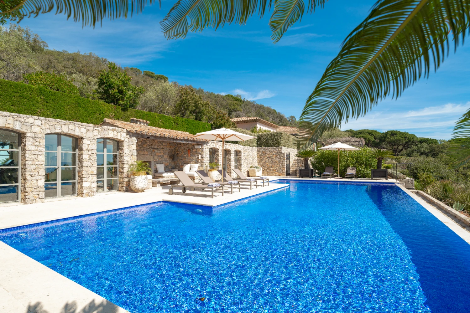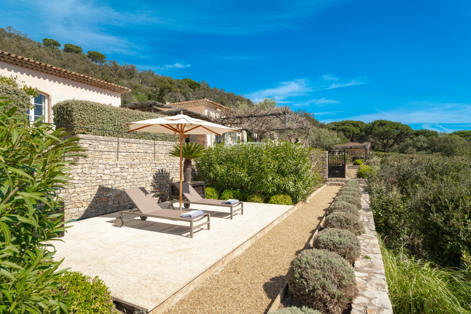The villa is located just a five-minute drive from the white-sand beaches of Pampelonne and the center of St. Tropez, where guests can indulge in world-class dining, shopping, and sightseeing.