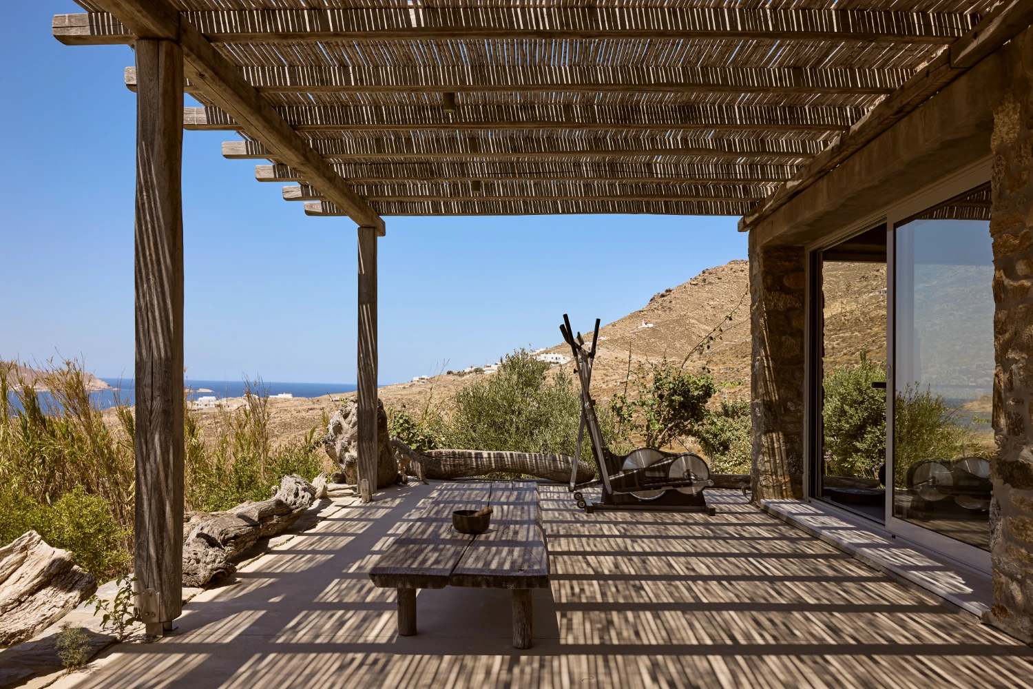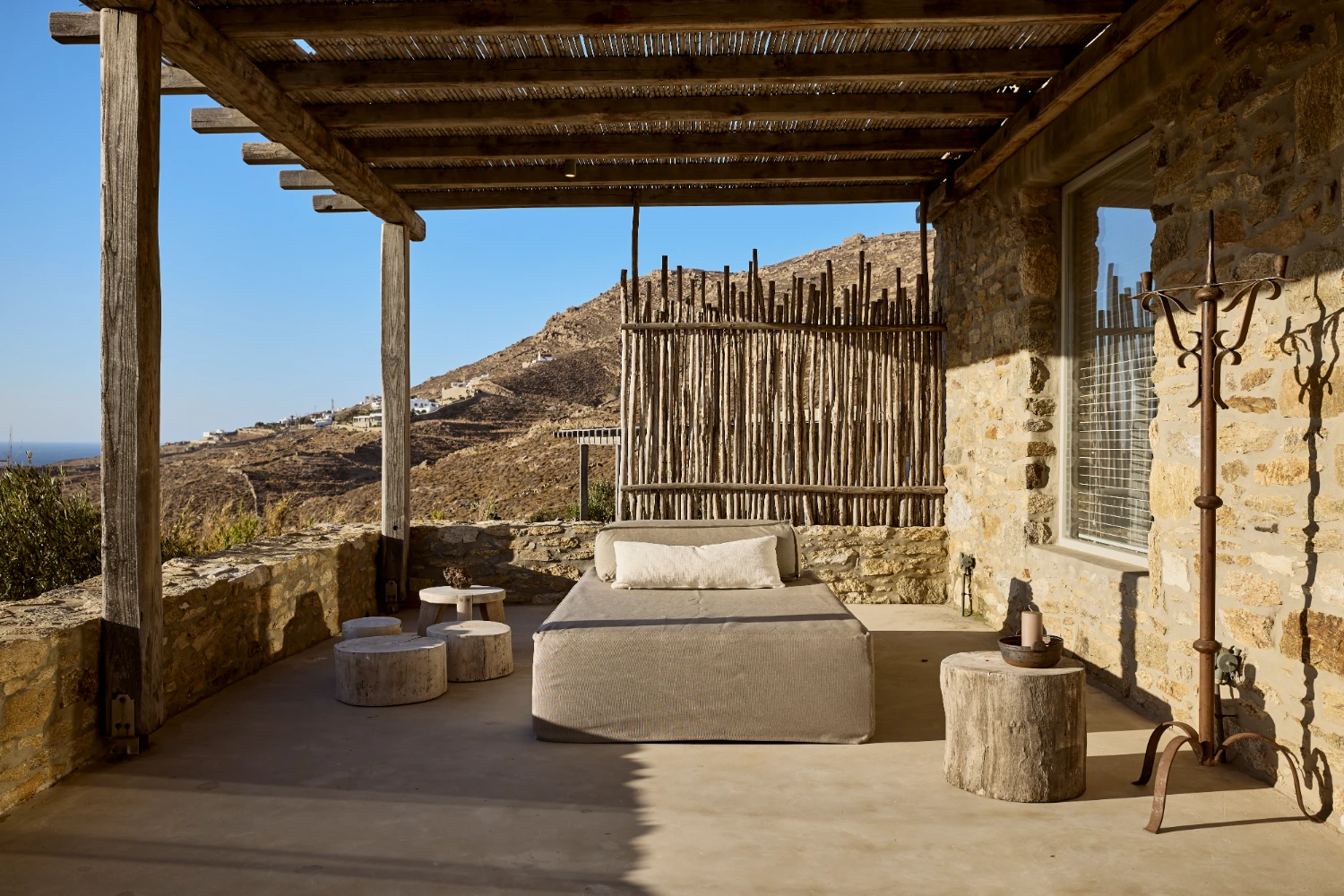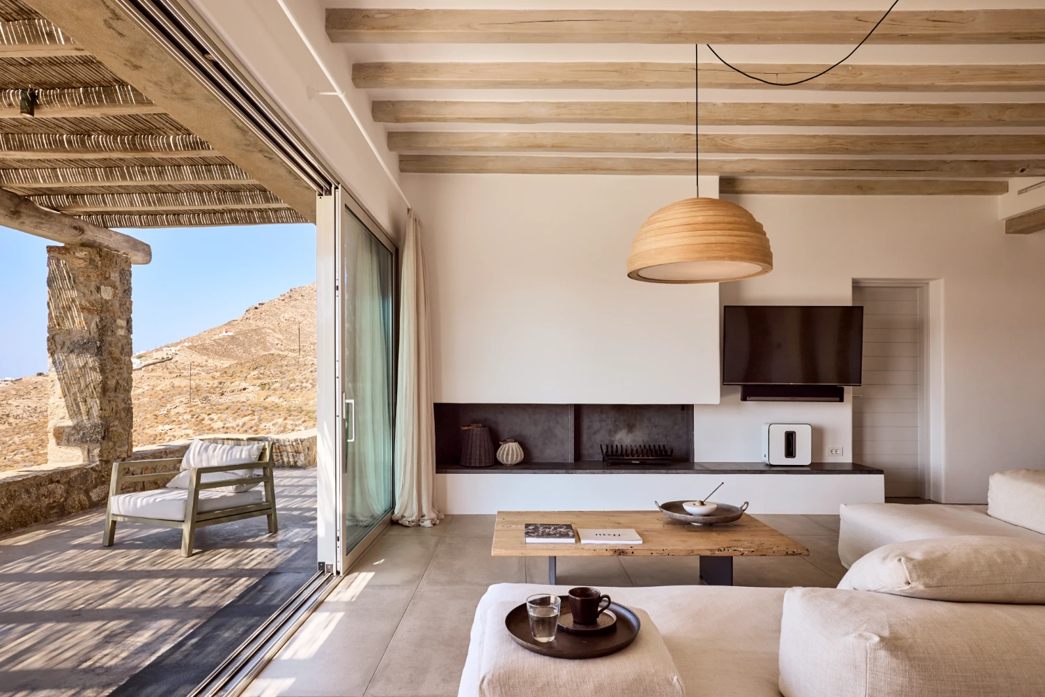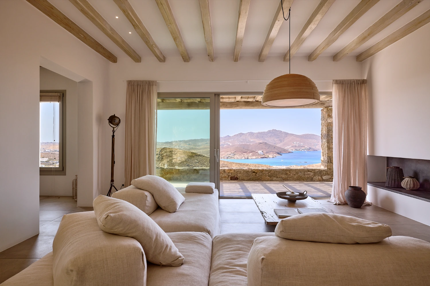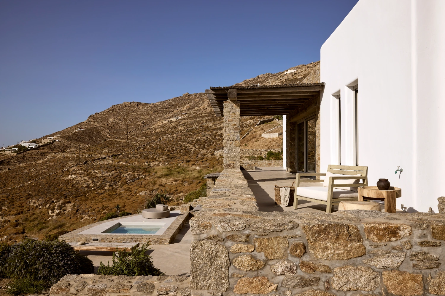 A newly built property situated just 800m from the beach, Amra is a luxury vacation rental with an exclusive location. An ultra-contemporary, rustic design, luxury facilities, and stunning views of the landscape below place this property among the most exclusive on the island of Mykonos.