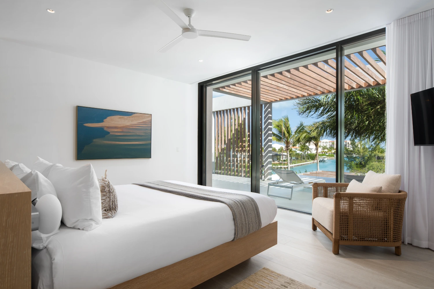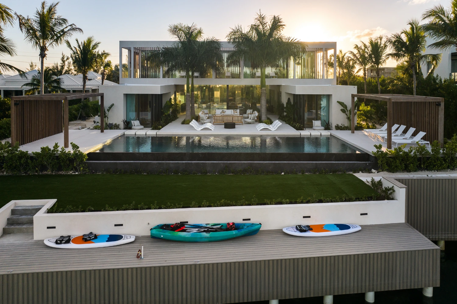 Anara is a modern canal-front villa in Turks & Caicos, offering a luxurious and serene retreat in a tropical setting. With elegant minimalist design and expansive shared spaces, Anara creates a calm, sophisticated atmosphere where guests can unwind and enjoy time together in one of the Caribbean’s most captivating destinations.