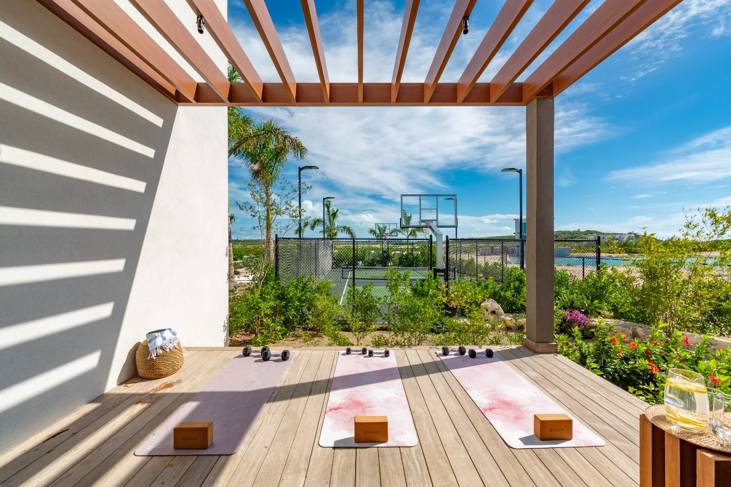 Whether traveling with family or friends, guests can access a roof deck movie theater, sea views, fully-equipped gym, yoga deck, office room, a bar with a TV, private beachfront, heated swimming pool, hot tub, outdoor grill, three fire pits, daily concierge services, daily housekeeping, chef services, villa host services, pre-arrival grocery services, pickleball court with basketball hoops, a Zen garden, four stand-up paddle boards, four kayaks, four cruiser bikes, Sonos sound system, and an elevator.