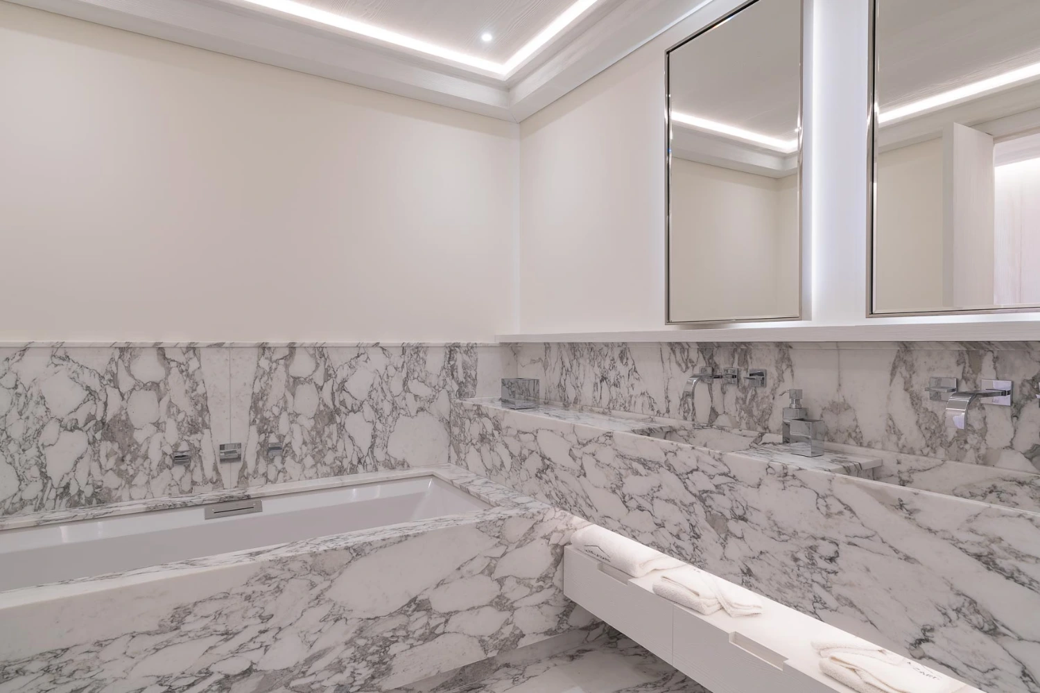 A private library and an extensive wine cellar on the villa’s lower floor invite guests to linger, reading a book or deciding between top-notch bottles of French wine. Active guests will find much to love about the gym, from the TV to the private shower room. The massage room and hammam encourage a restorative after-workout session.