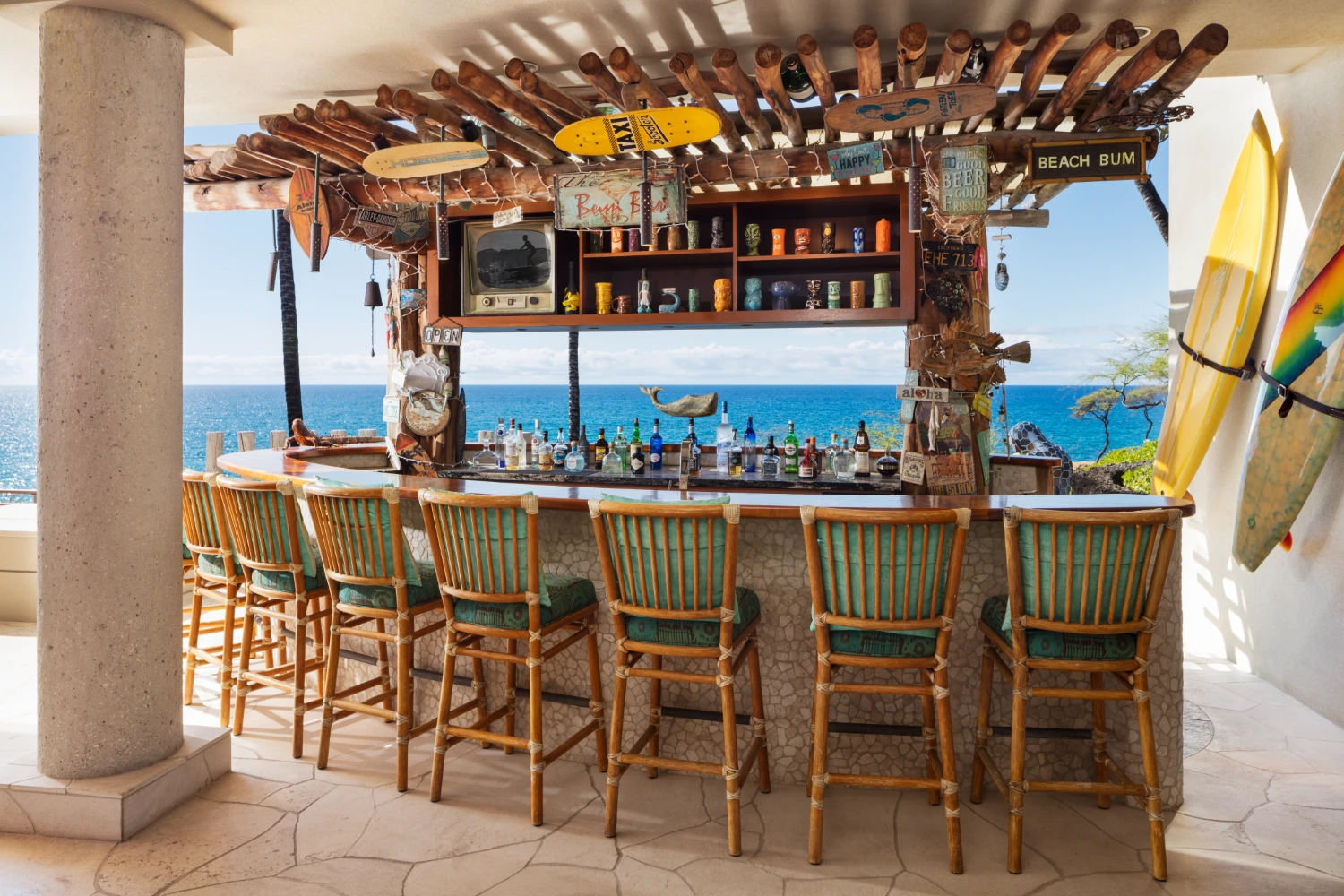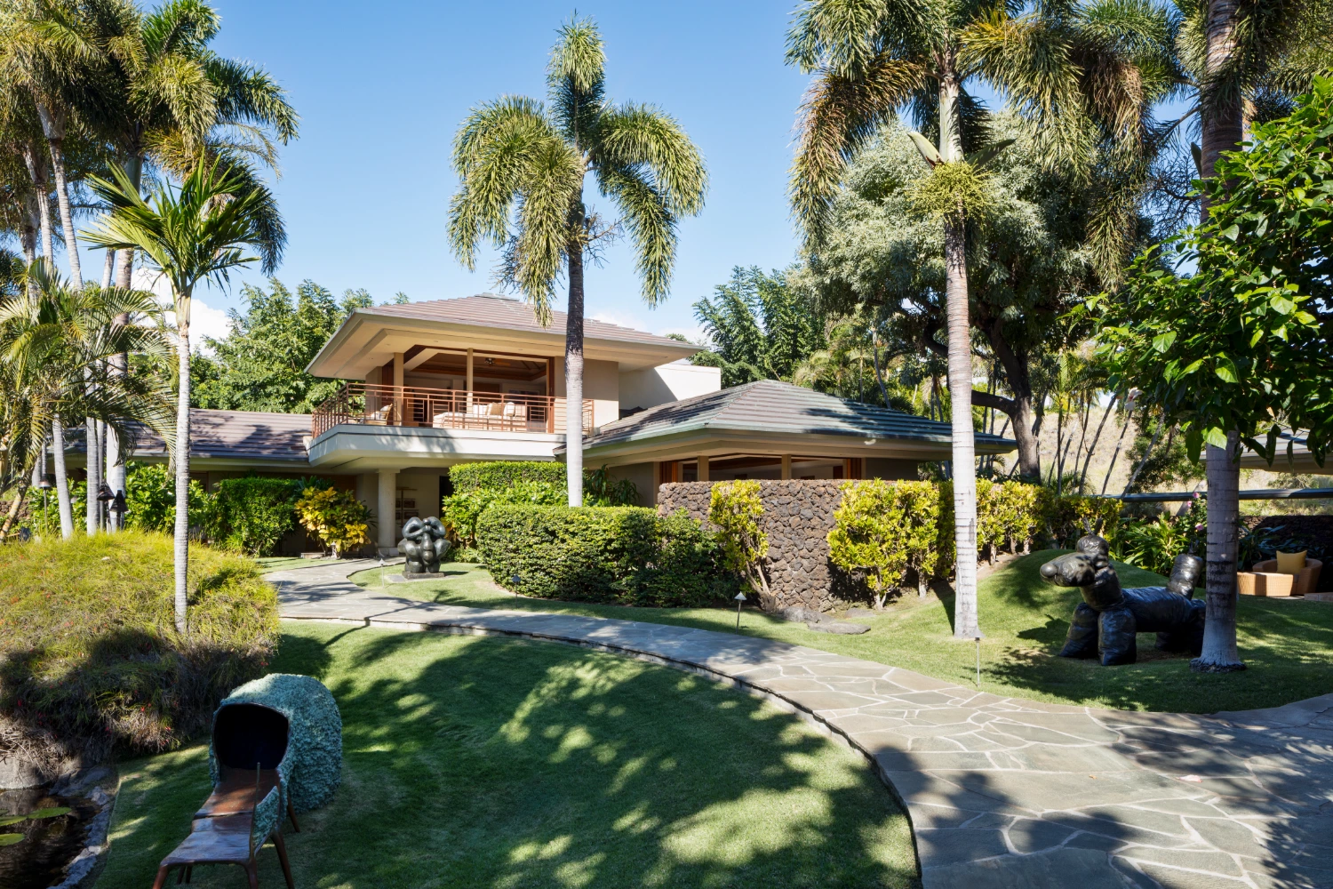 Kauhale Pilialoha is an idyllic, luxury villa located in the private, double-gated community of the Low Bluffs of Hapuna Beach on Hawaii’s Big Island. Offering stunning clifftop views of the sea, this enchanting property boasts top-tier amenities, including an infinity pool, a hot tub, staff quarters, three koi ponds, a theater, a game room, a wood-burning BBQ, a gas grill, multiple golf carts, a gym, concierge services, and an outdoor fireplace.