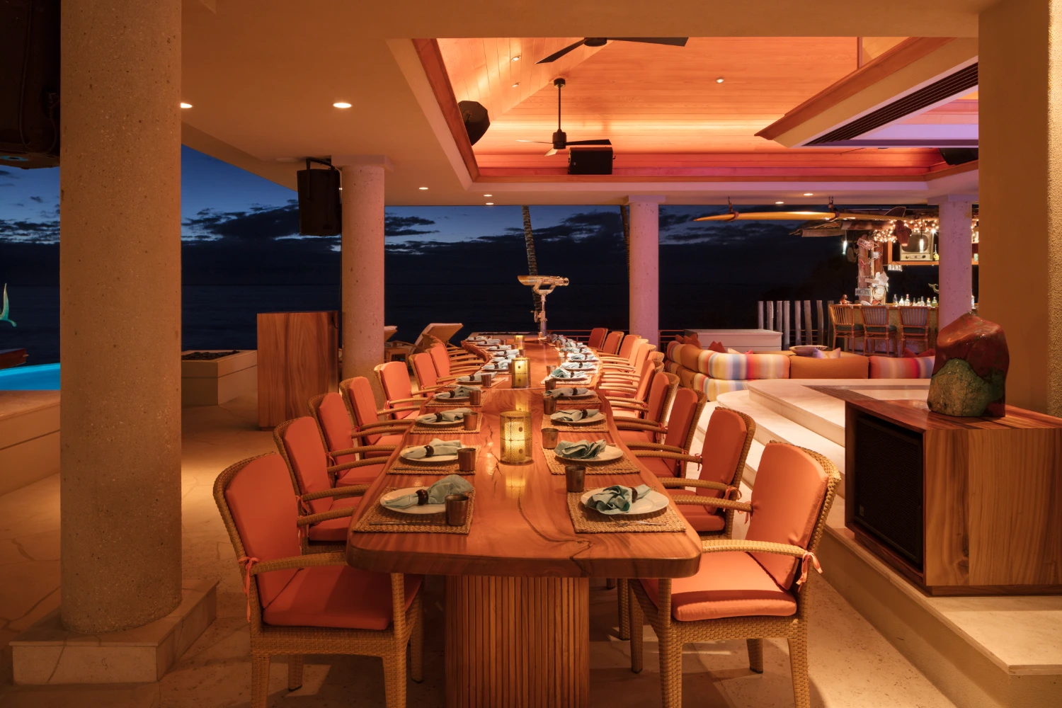 The property features 10 bedrooms, each with outdoor seating and 10 bathrooms across 4 independent, pod-style villas, accommodating up to 20 guests. The master villa number 1 features ocean views, a king-size bed, spacious his-and-her closets, an indoor shower with two shower heads and his-and-her toilets, and an outdoor shower. This intimate villa accommodates two guests, making it ideal for a couple desiring extra privacy and alone time.