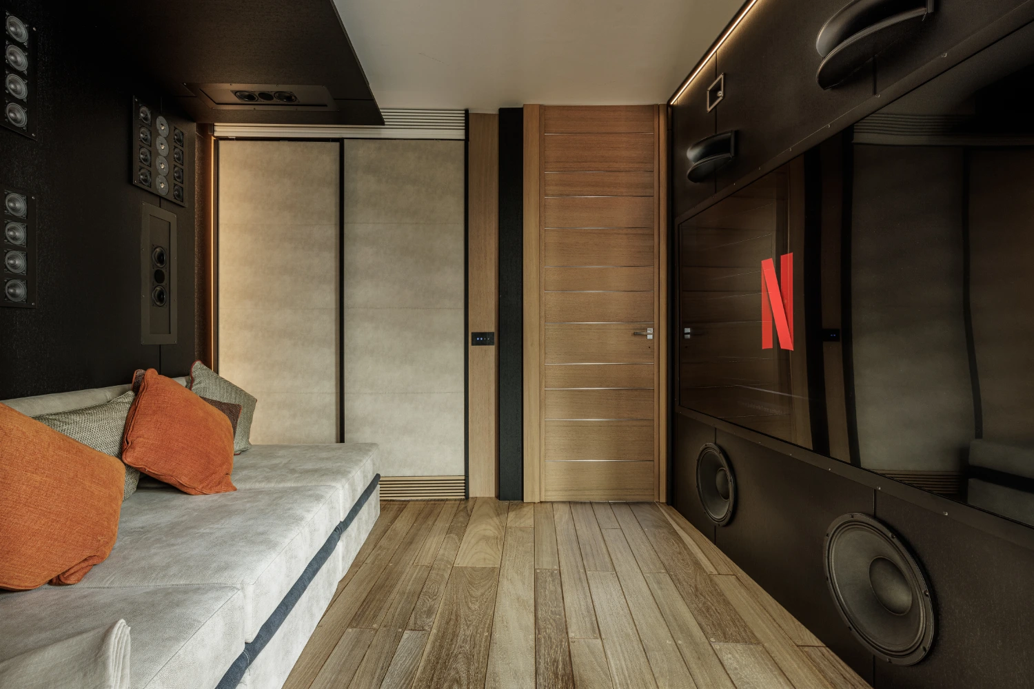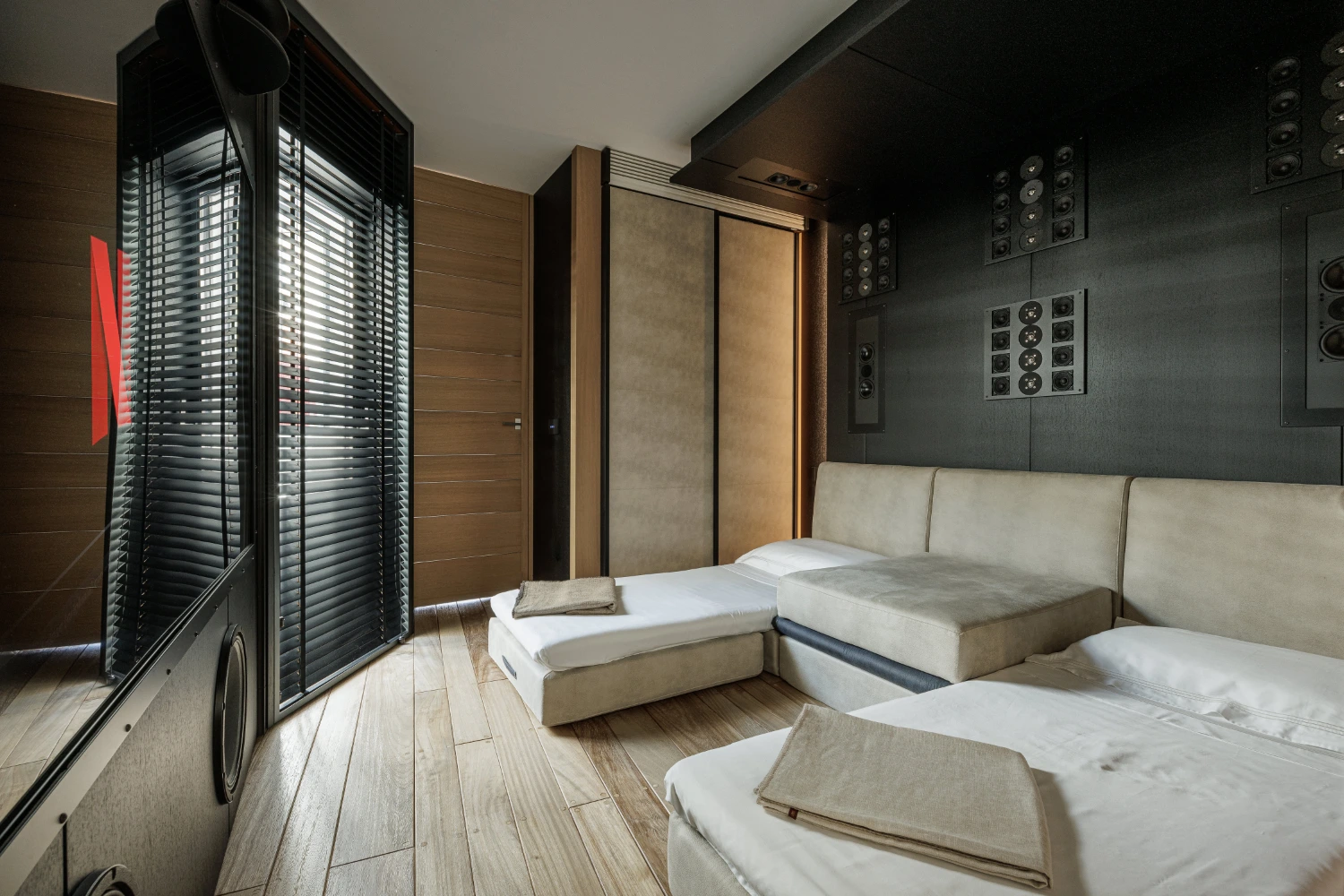 Once evening arrives, head to the cinema room to access international cable and satellite channels via a giant flat-screen television. The cinema room can be converted into a children’s room with two single beds.