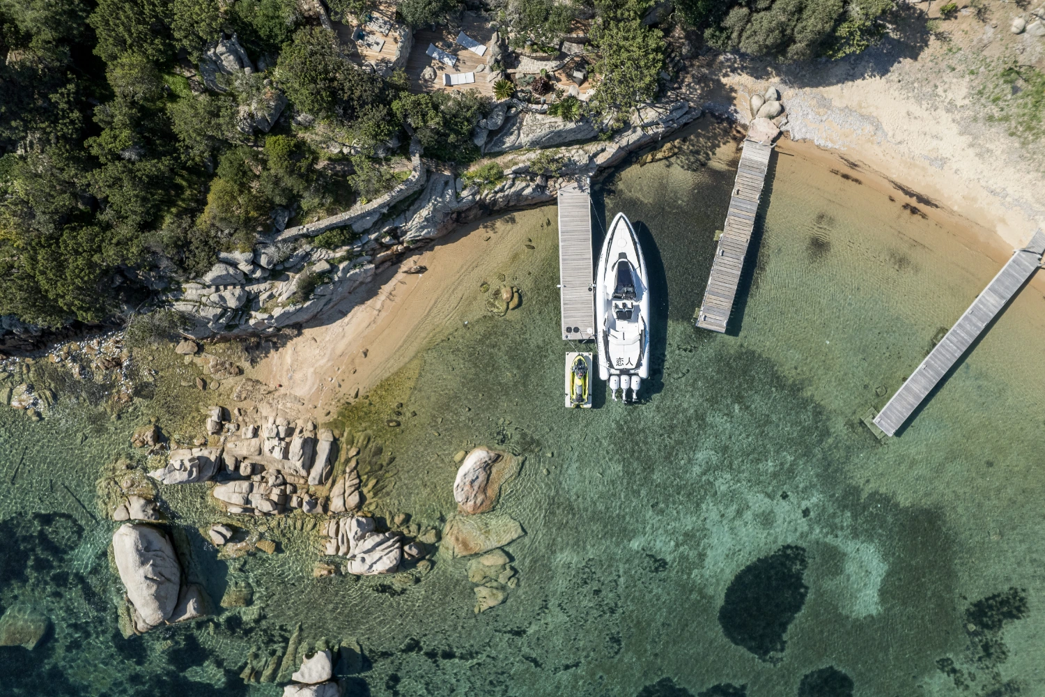 Featuring hardwood floors throughout and a stunning location in Sardinia among granite rocks, a visit to Villa Aaliyah feels like living on a luxury yacht. Located in Porto Rafael, a secluded, unspoiled corner of the island, this enchanting vacation property offers a unique stay in one of the most beautiful natural settings in Mediterranean Europe.