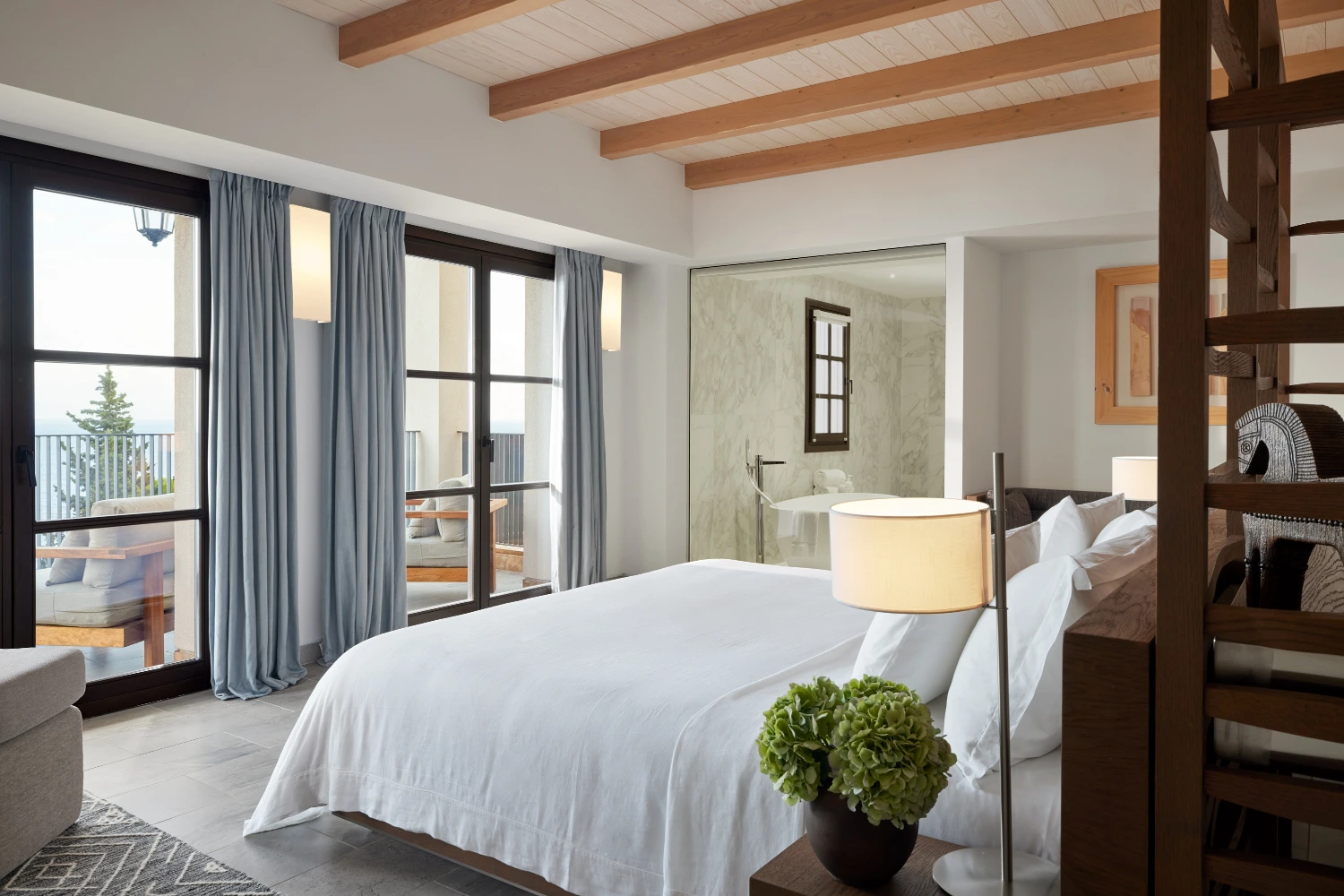 Ionian Seaview Two-Bedroom Pool Villa is a stunning sea view villa that’s part of the Angsana Corfu Resort & Spa and overlooks the sparkling Ionian Sea. Offering the privacy of a high-end vacation property and the exclusive comforts of a hotel, this villa boasts world-class amenities, including an infinity pool, sea views, Bluetooth speakers, access to hotel amenities, and complimentary first use of the mini bar.