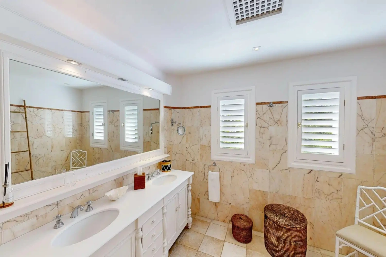 A wrap-around veranda flows seamlessly into the villa’s expansive terrace, where guests can enjoy an array of outdoor living spaces, including a shaded gazebo, comfortable seating areas, and a heated swimming pool surrounded by manicured gardens and a lush lawn. Every corner of Villa Mustique has been thoughtfully designed to encourage relaxation, connection, and effortless Caribbean living.