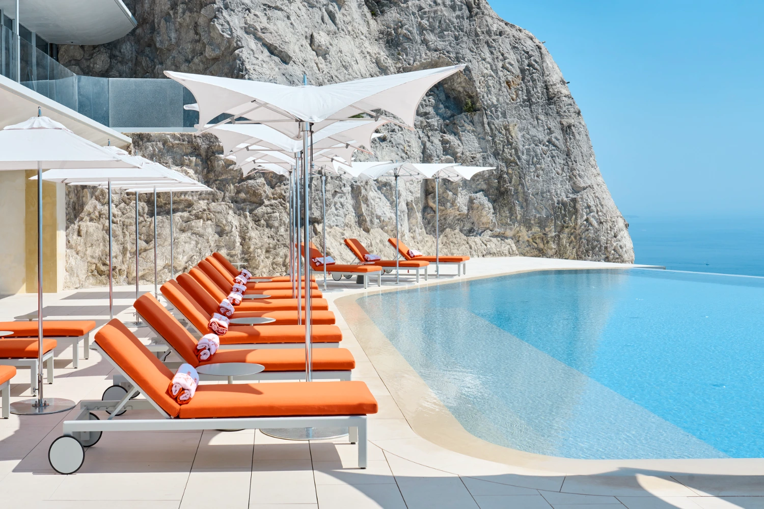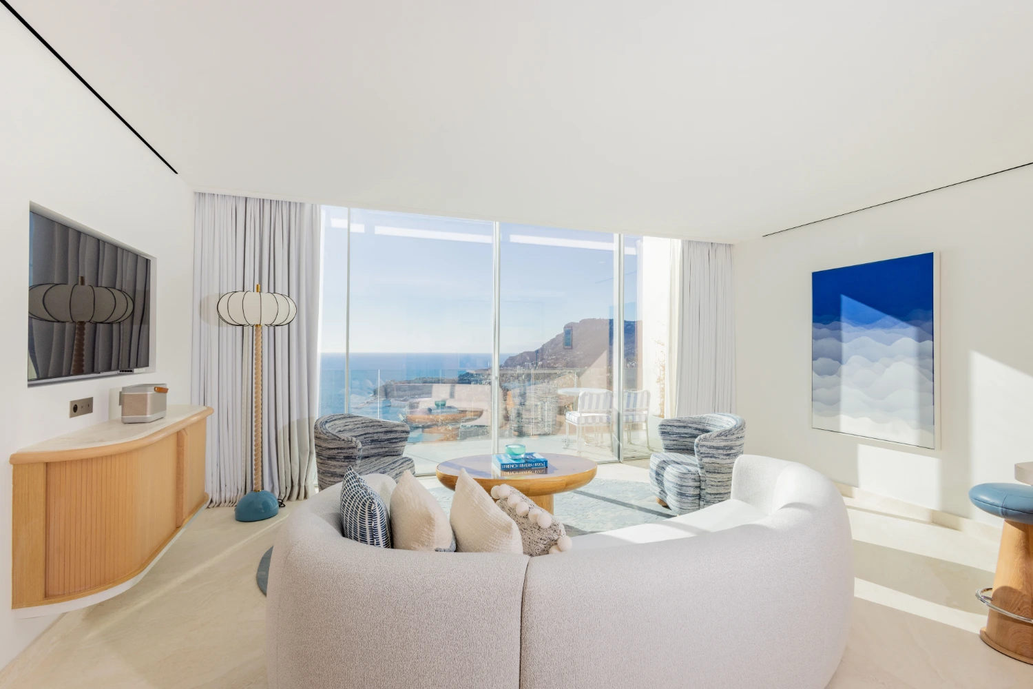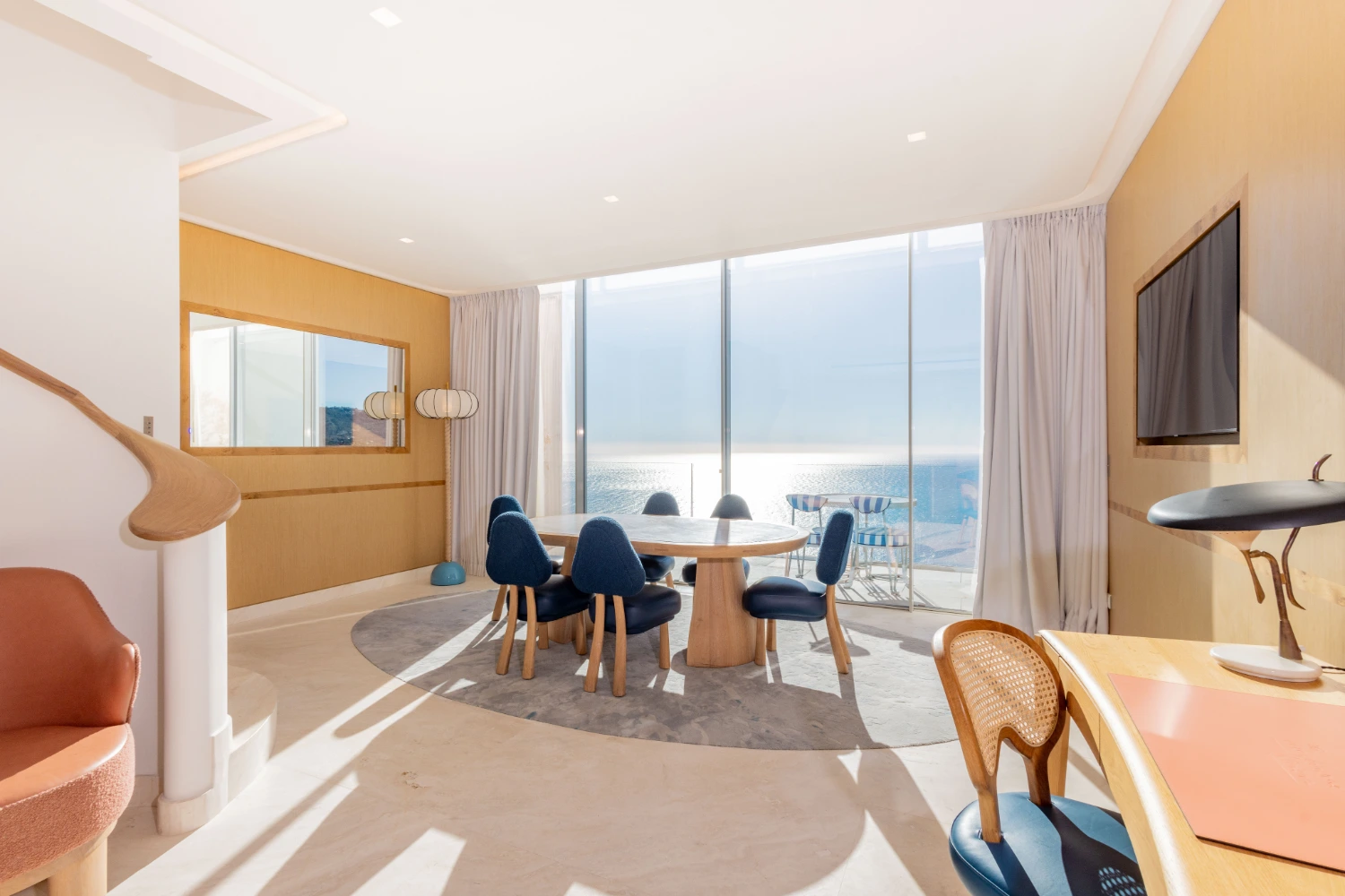 Each of the hotel’s rooms and suites is designed as a private sanctuary of light and space. Floor-to-ceiling windows open onto terraces, offering infinite views of the Mediterranean Sea. Each room is tastefully decorated with contemporary furnishings and luxurious materials, while the suites elevate the experience with generous living spaces that guarantee an unforgettable stay.