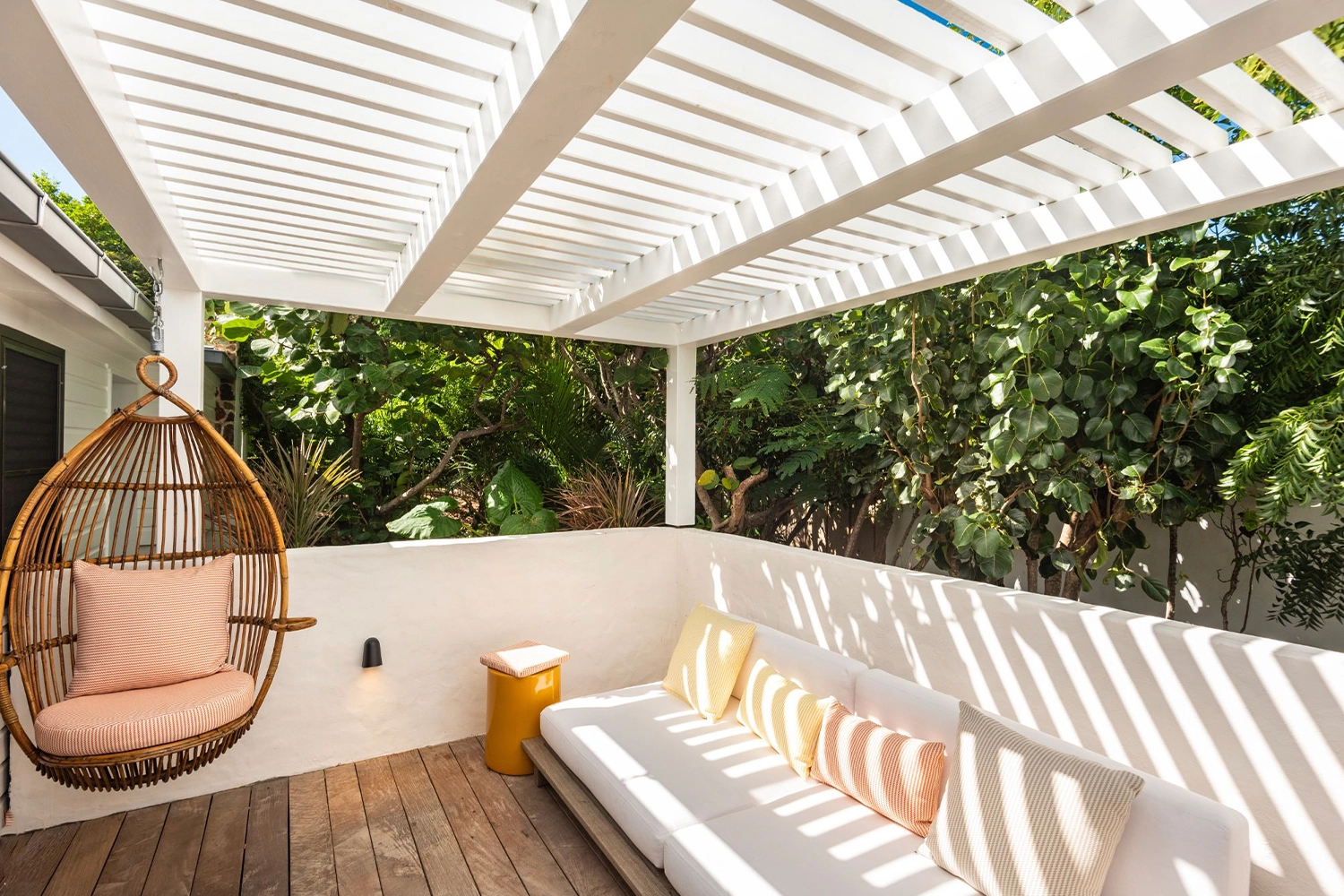 The reimagined villa Casa Minotto blends traditional St. Barth architecture with contemporary elegance, maintaining its original “cases” and transforming them into beautifully crafted bedrooms. The lush, tropical ambiance is preserved with mature plants and trees, complemented by a new deck and gardens.